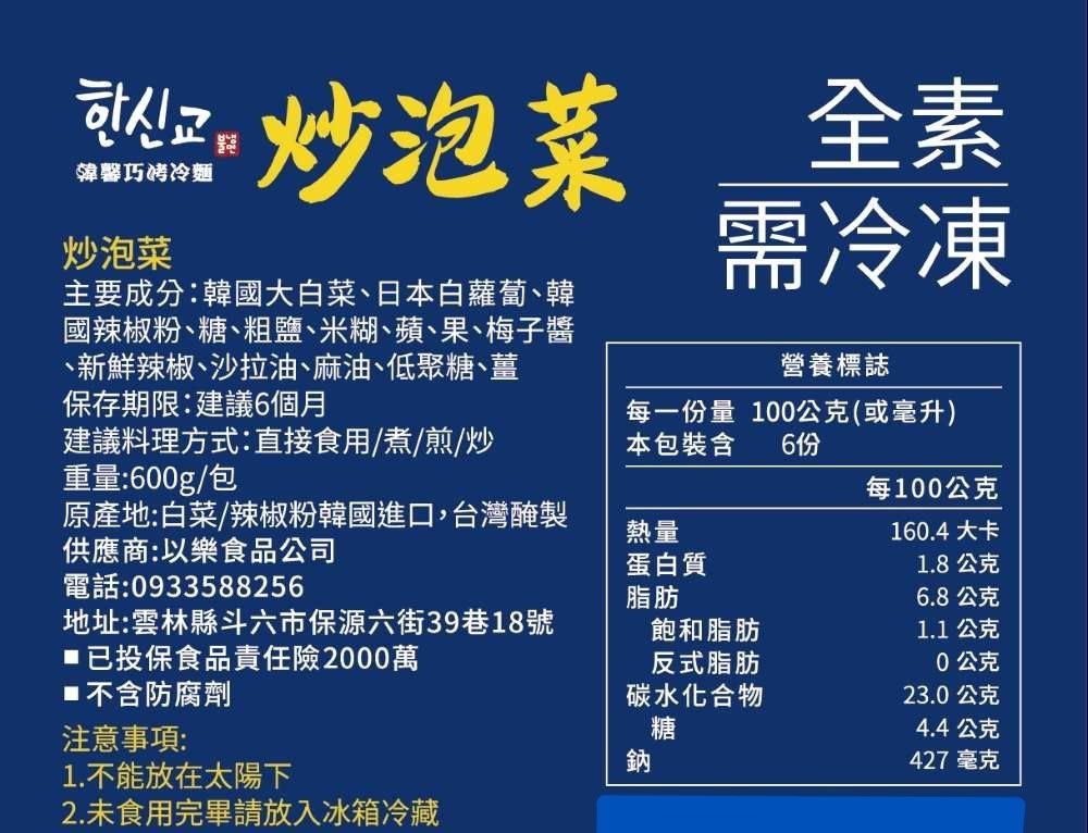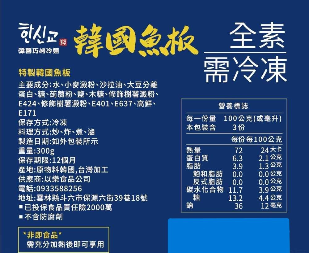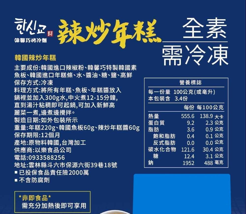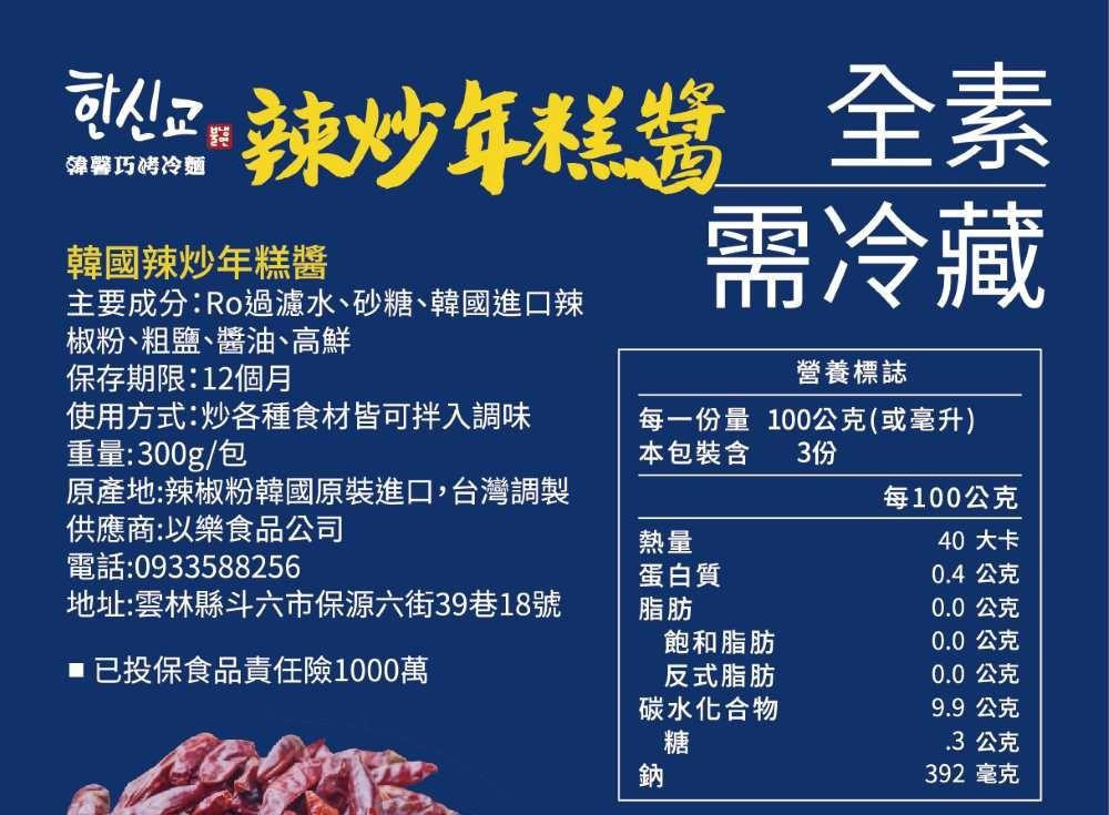 (辣炒年糕340g*1、辣炒年糕醬300g*1、韓國炒泡菜600g*1、德式香長600g*1、韓國魚板300g*1)